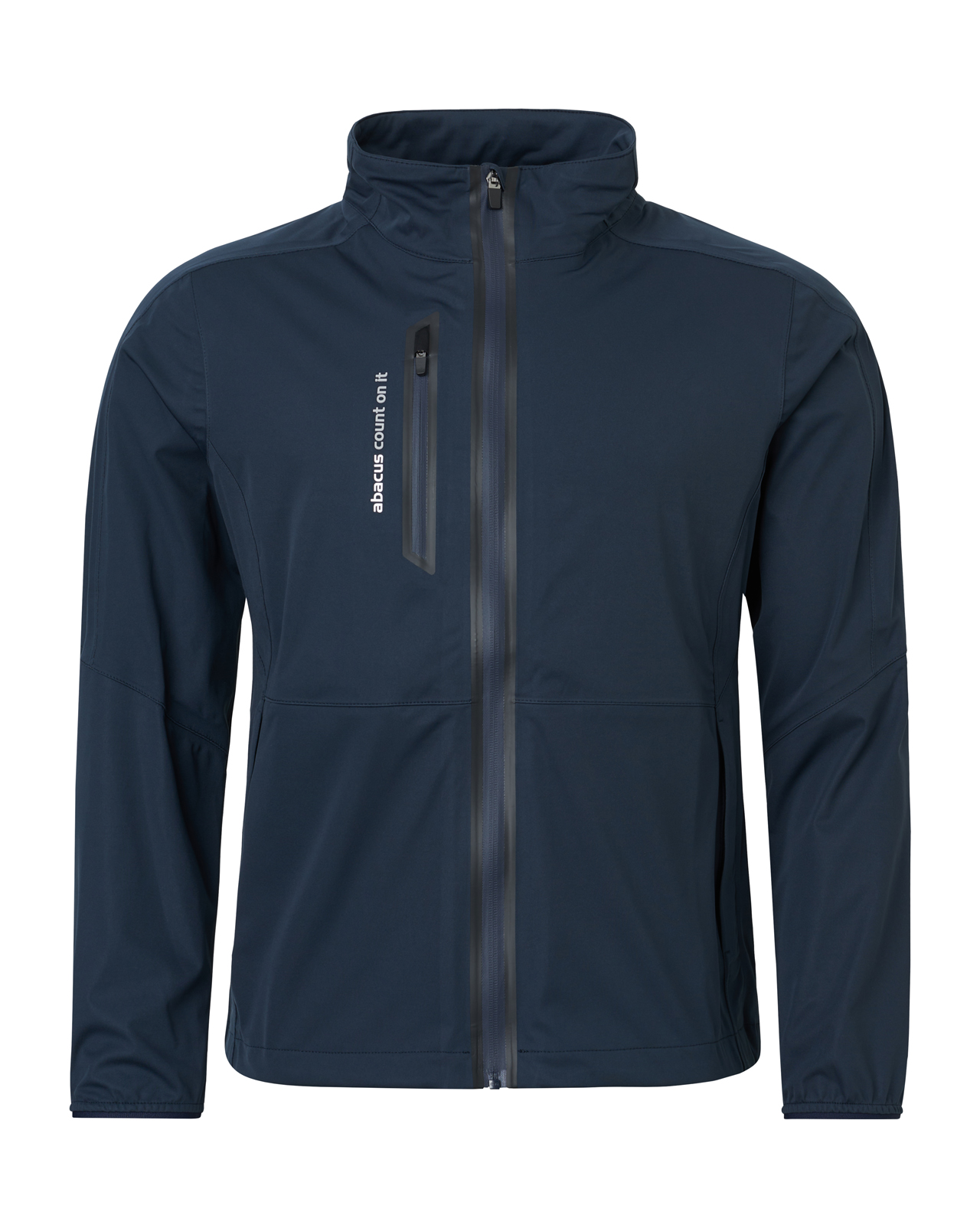 Bounce regnjakke er fremstillet af et vandtæt stof i 4-vejs stretch, som også ånder meget godt. Alle sømme er forseglede med blød og fleksibel tape. Materialet har 3 lag med samme bløde og elastiske stof på ydersiden som på indersiden, samt med en funktionel membran, der er bundet mellem lagene. Denne membran holder regnen ude, og sørger for, at din kropsvarme kan transporteres ud til ydersiden, hvor den fordamper. Der er ingen for i denne jakke på grund af den bløde inderside, og dette resulterer i en meget behagelig følelse, når du spiller. Jakken har vandtætte lynlåse foran, på brystlommen og de to forlommer. Abacus-logo i nakken og langs brystlommen.