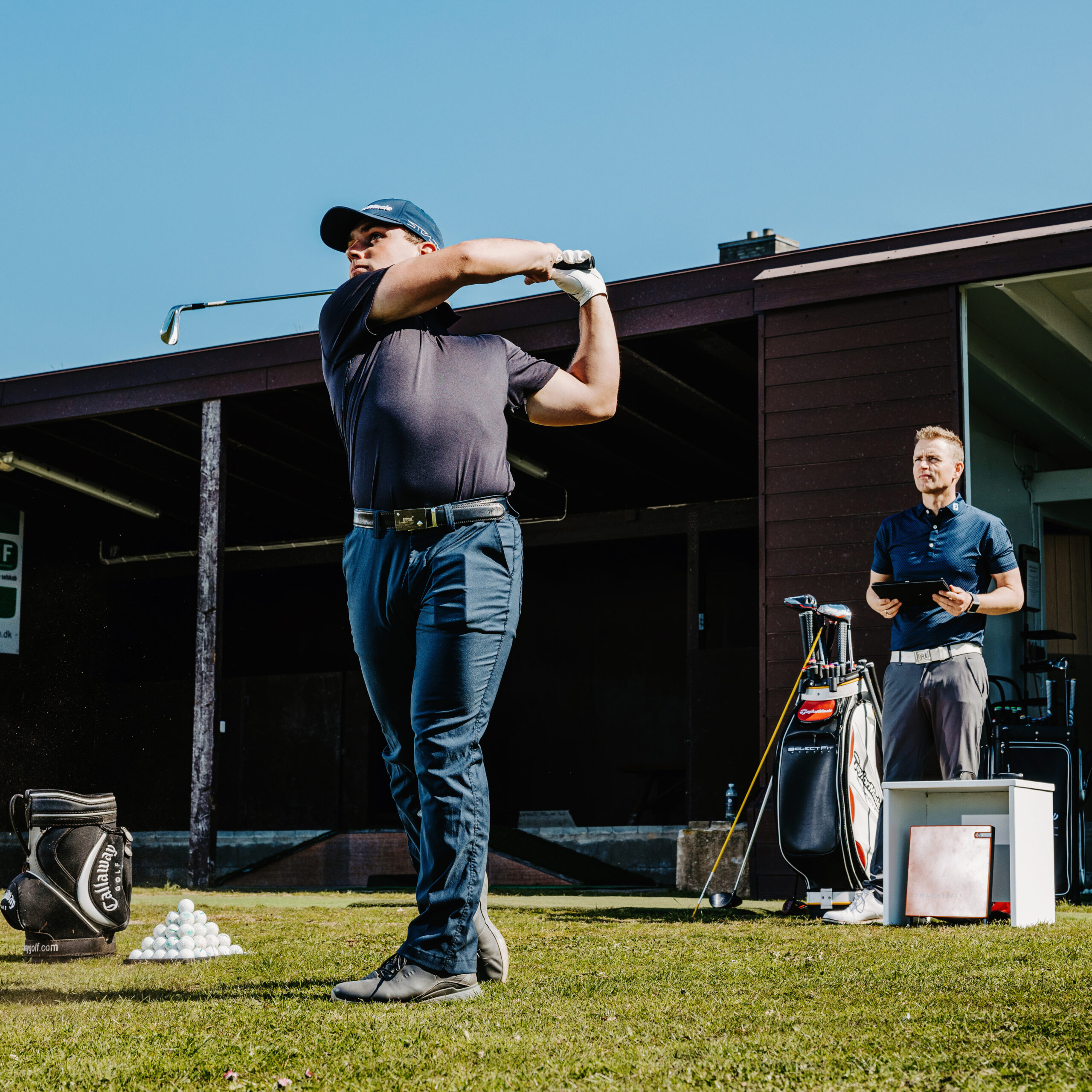 Køllerne skal helst slås og vurderes på en driving range, hvor man kan følge boldflugten. Ved hjælp af TrackMan får René også masser af værdifulde data om kølle og bold, der ikke er synlige med det blotte øje.