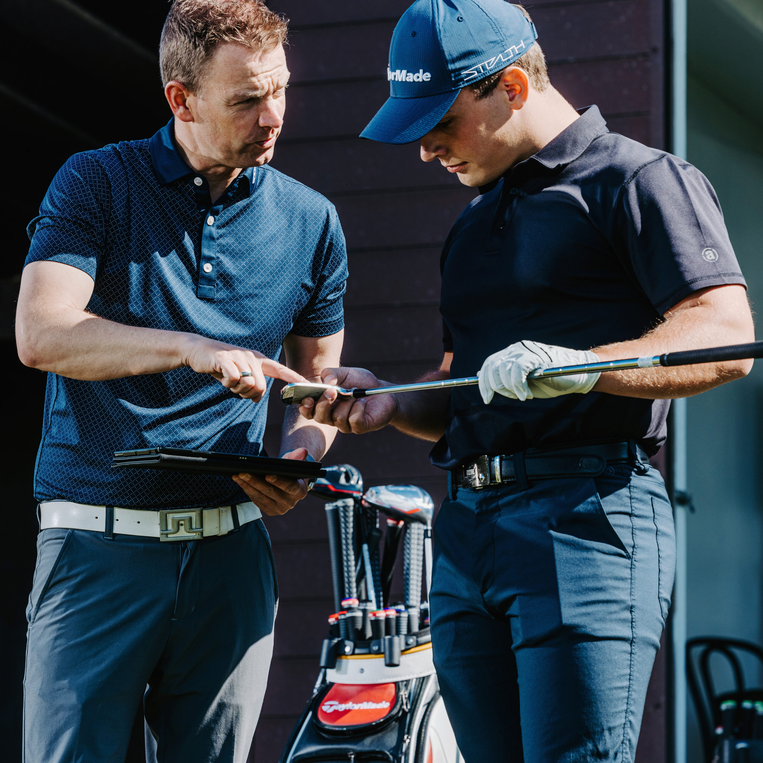 Når der er blevet udvalgt forskellige køller, er det tid til at gå i gang med at måle diverse spillerspecifikke egenskaber. Ved en Custom Fitting måles der dels statistiske værdier, som f.eks. spillerens højde og hændernes størrelse – og ved hjælp af en launch monitor får René også svar på de mere dynamiske værdier og med hvilken hastighed spilleren svinger sin kølle.