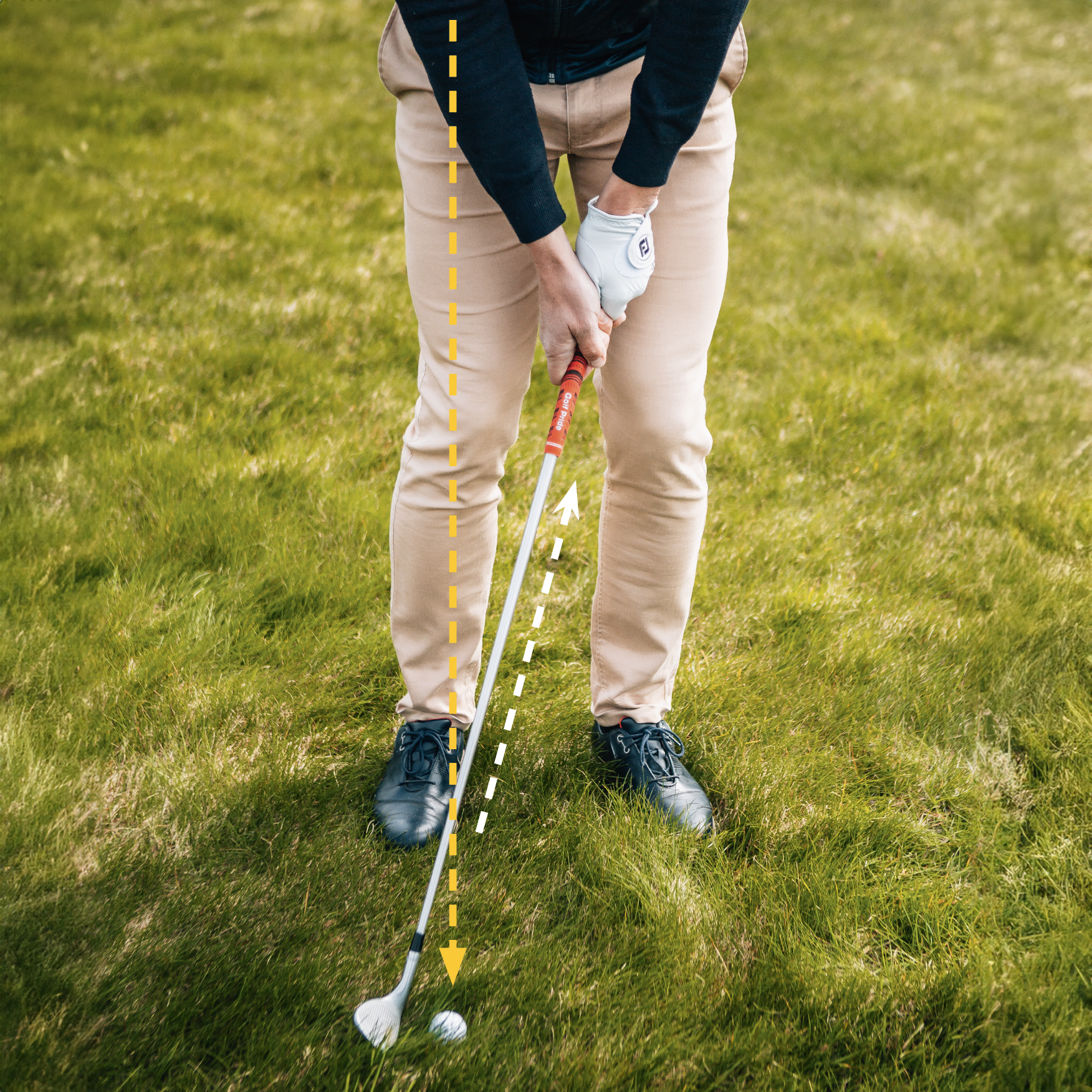 Det er ingen overdrivelse at påstå, at stigninger og fald påvirker wedgespillet, men ved at justere din krop i forhold til underlaget er der meget at vinde. Hvis bolden ligger på en stigning, kan du forsøge at ”genskabe” følelsen af en plan placering. Forestil dig, at du har en golfspillende statue foran dig. Vip derefter statuen fem grader i en eller anden retning, så følger kroppens holdning med…