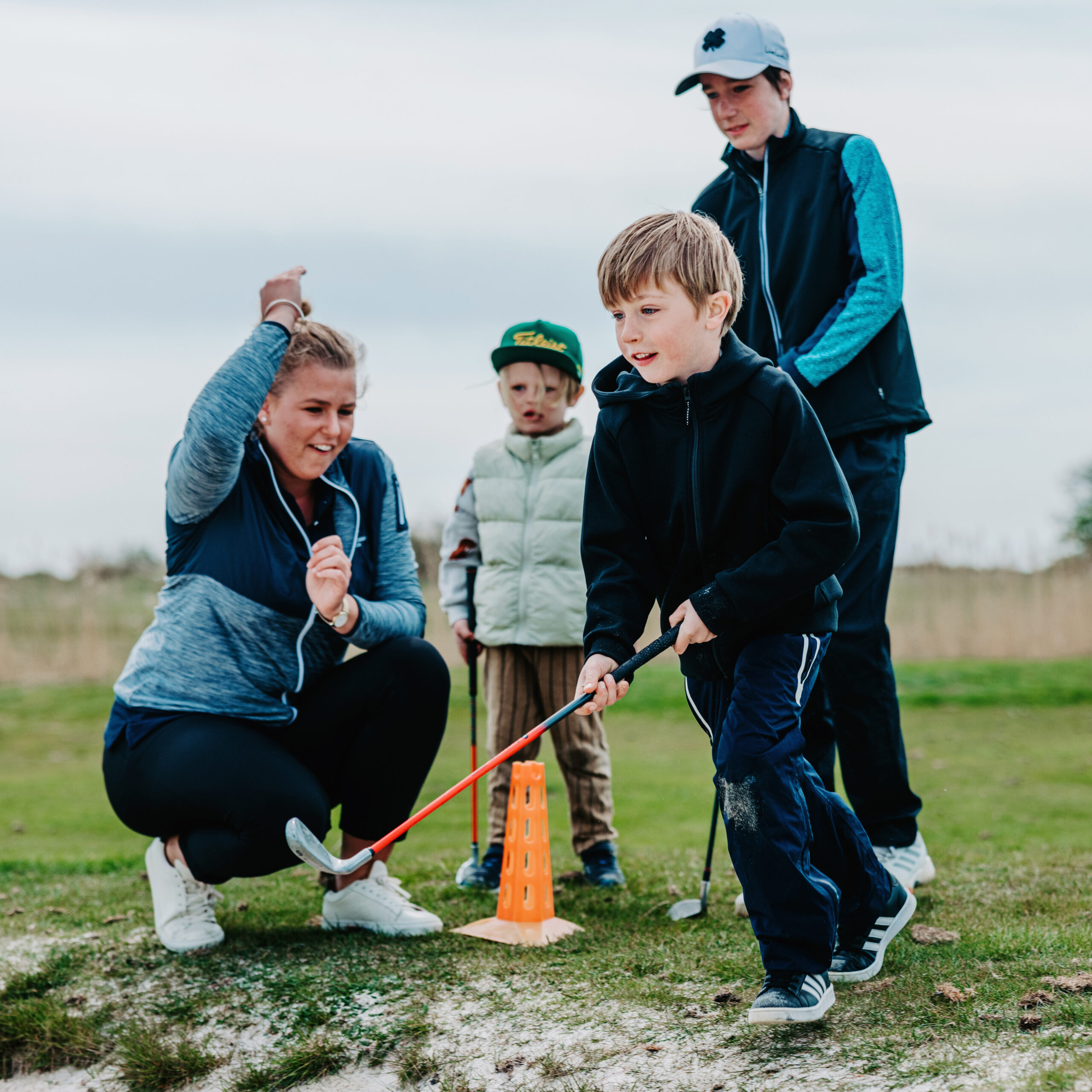 – Meget fokus ligger på at lege golf. Vi forsøger altid at målrette træningen efter den pågældende aldersgruppe. De yngste befinder sig i en periode, hvor de lærer meget motorik f.eks. at springe, hoppe og kaste. Men vi lægger naturligvis golfmomenter ind. For en 6-årig er det ikke supersjovt at slå til bolde i 60 minutter, og derfor forsøger vi at skabe korte hurtige momenter, som gør, at der hele tiden sker noget nyt.