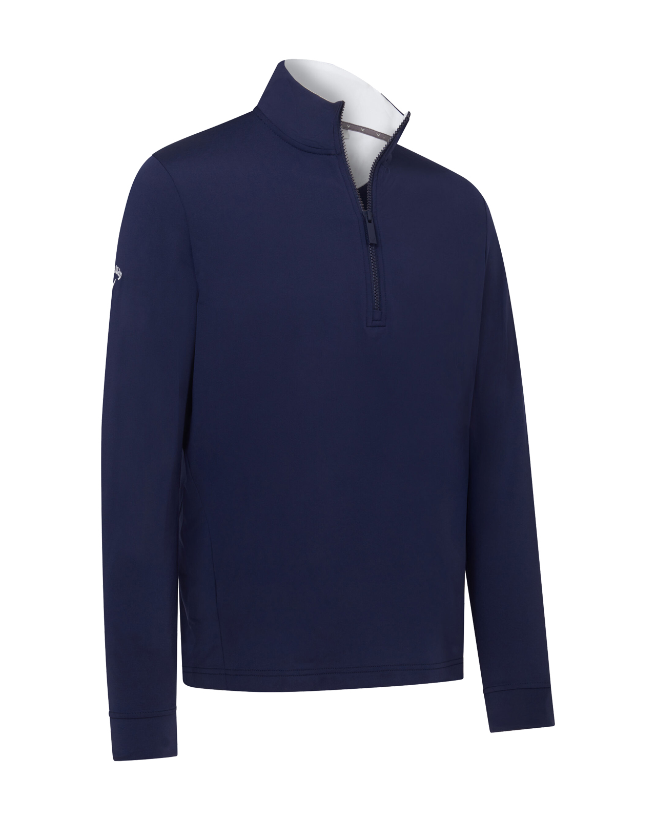 Callaway Odyssey 1/4 Zip Pullover til mænd med karakteristisk blokstribe. Pulloveren har stretch og Swing-Tech™-teknologi, der hjælper med at øge bevægelsesfriheden og komforten.